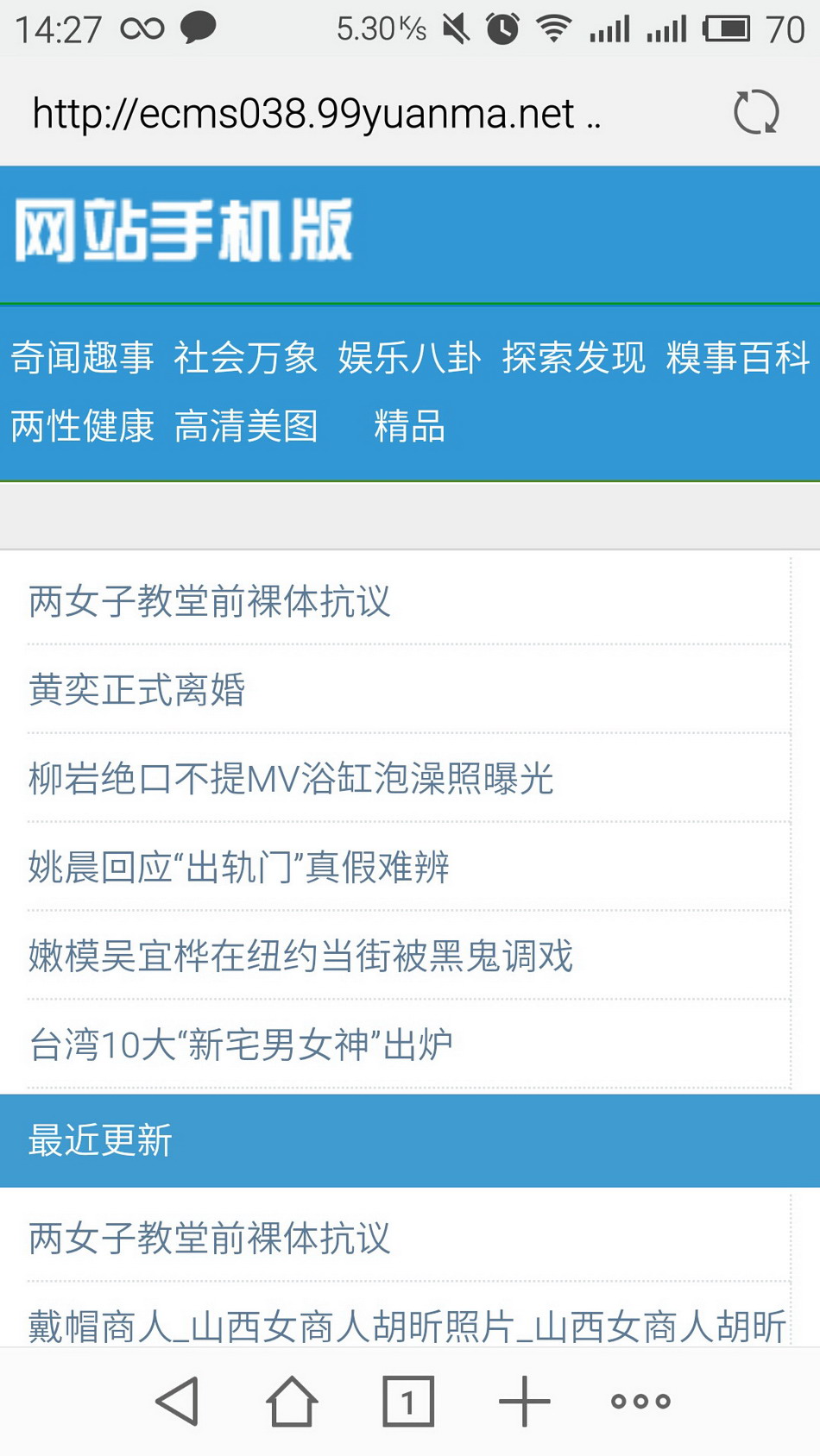 采用帝国CMS最新版程序做为底层,安全稳定高效。适合做门户资讯,美女图片,娱乐八卦,两性健康等网站,后台自带丰富的广告位管理(适用于大部分广告联盟标准尺寸),快速的发布广告。强大的首页推荐和头条属性。让首页信息调用方便快捷!自动缩略图尺寸,让缩略图展示不再变形,后台添加新闻图片更简单更方便。已经默认做好SEO优化,自带约5000条信息,需要5G的空间来存放程序(删除自带数据后,程序+模板只有不到10M),到手即可开站!最近加入手机端,让手机也可以快速方便的浏览了!
